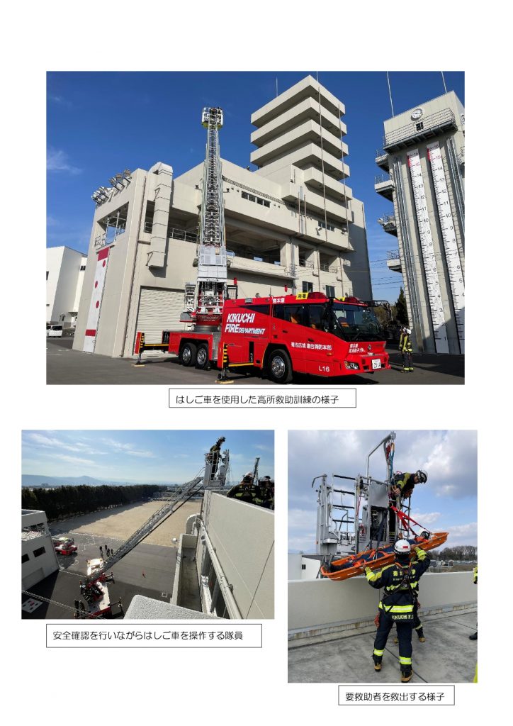 菊池広域連合消防本部と熊本市消防局によるはしご車合同訓練を実施しました